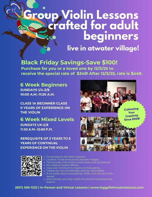 Leggy Fish Music Lessons is dedicated to offering high quality boutique instruction in violin, viola, cello, and piano for students of all levels. We teach all styles and offer convenient virtual lessons to students around the world.